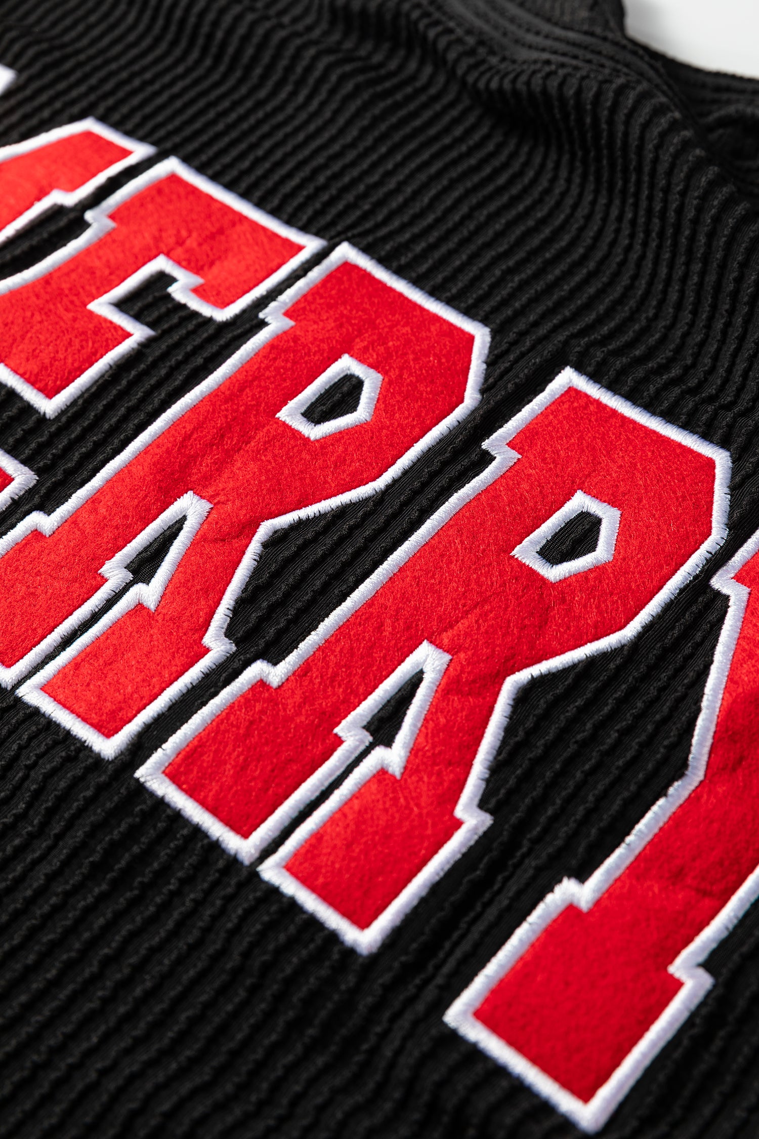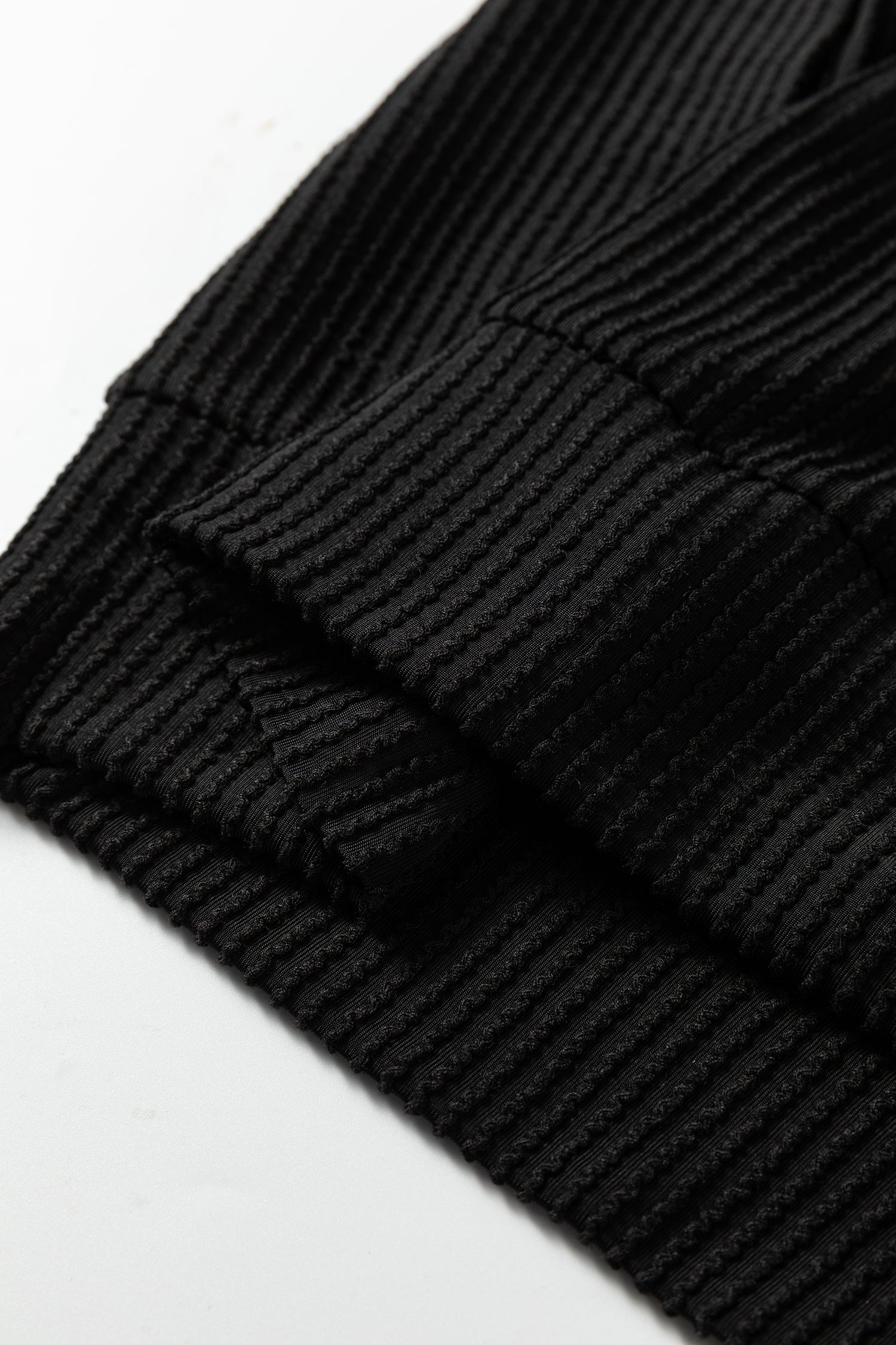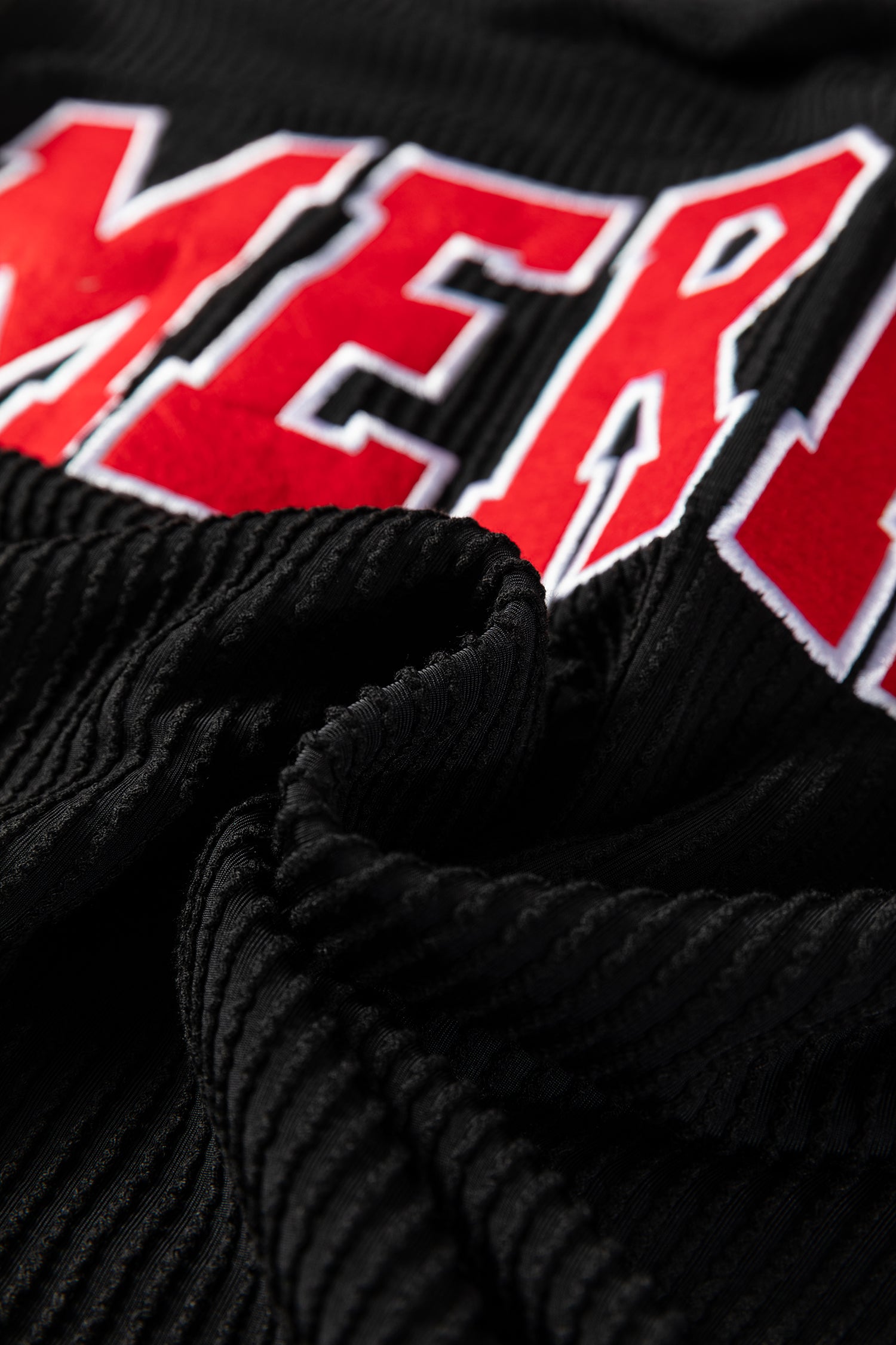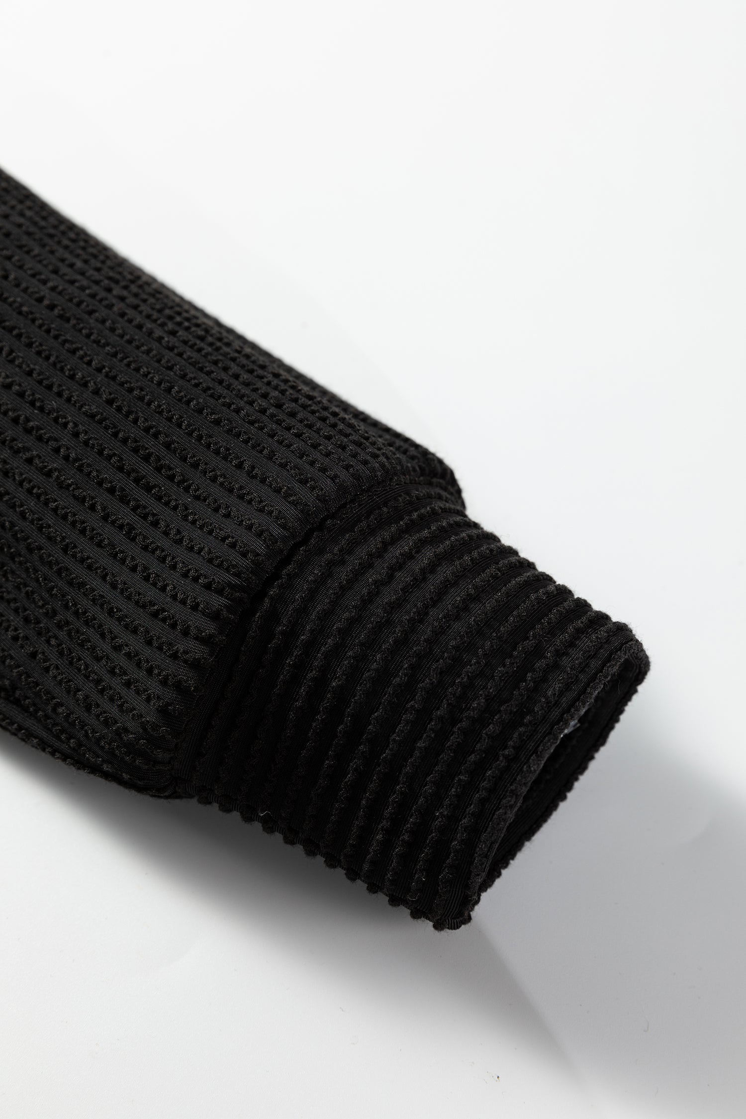 Black Twisted Rib Outlined Merry Letter Graphic Loose Long Sleeve Top