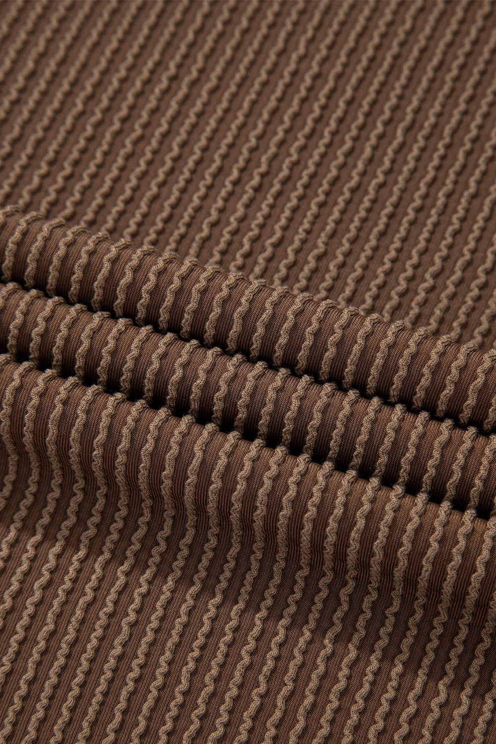 Chestnut Corded Knit Long Sleeve Top and High Waist Shorts Set
