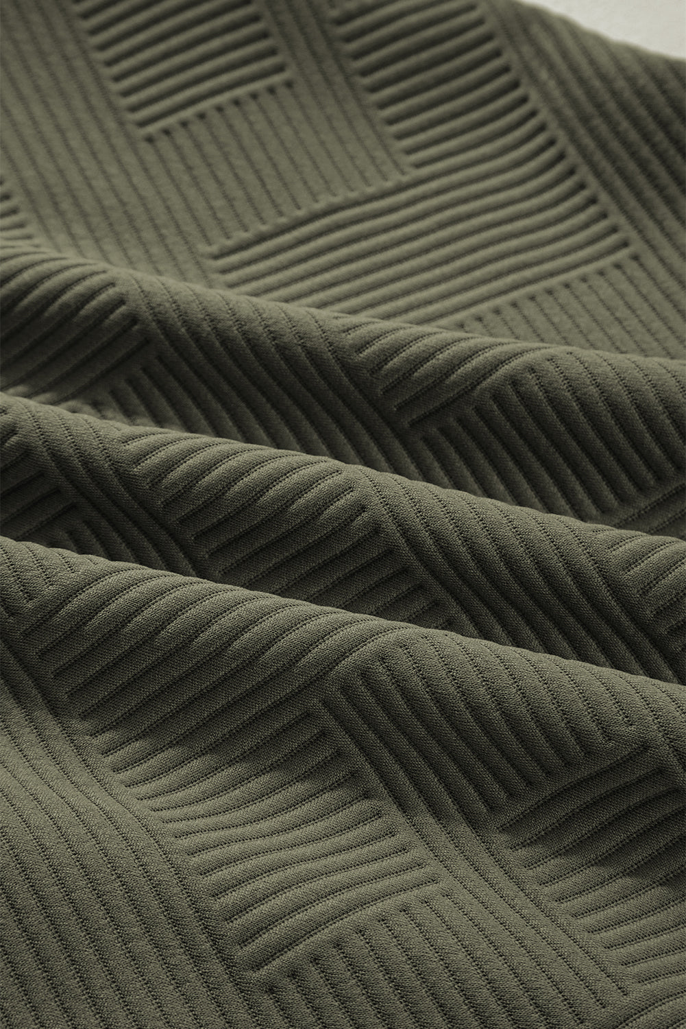 Jungle Green Quarter Zip Collar Bracelet Sleeve Textured Mini Dress