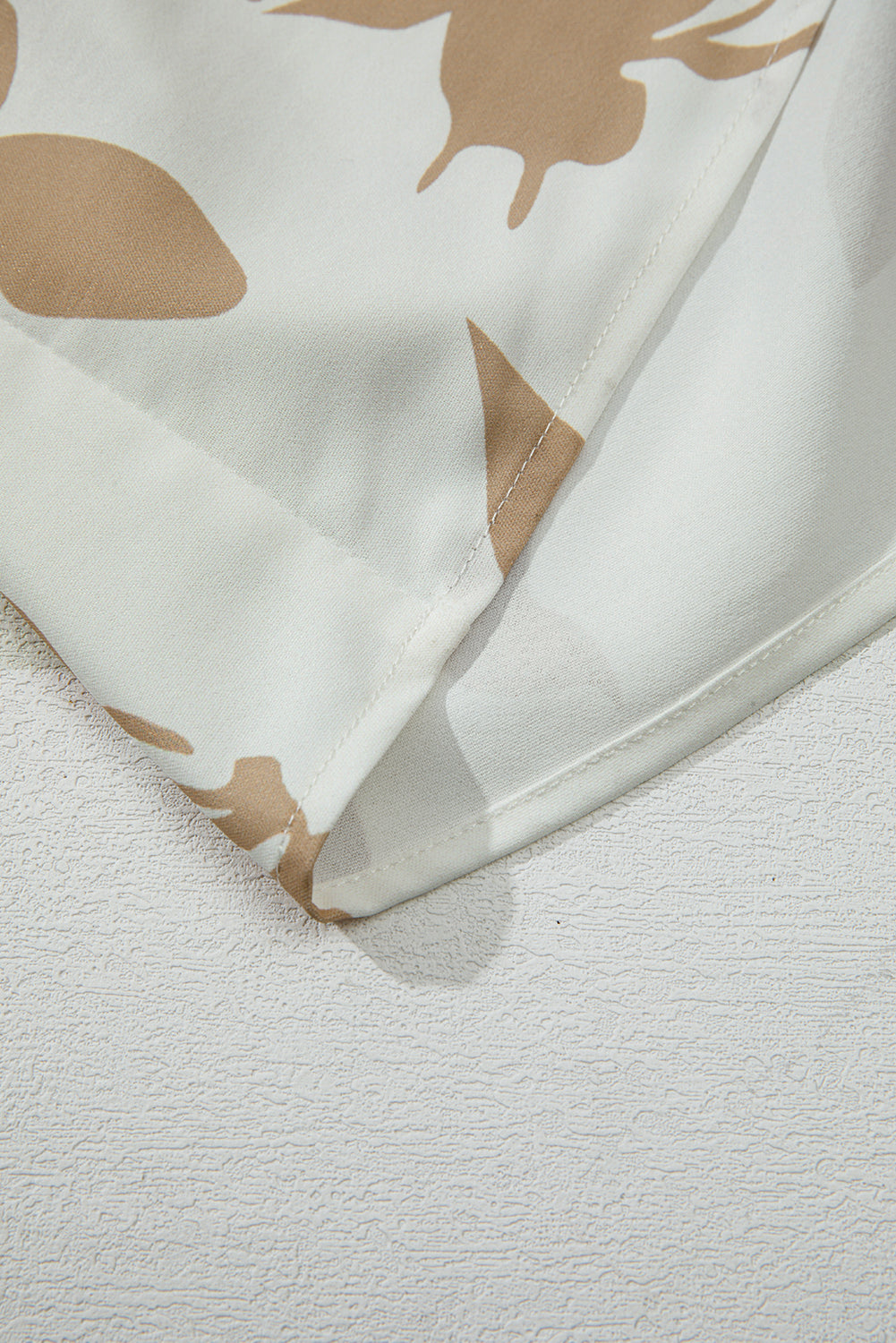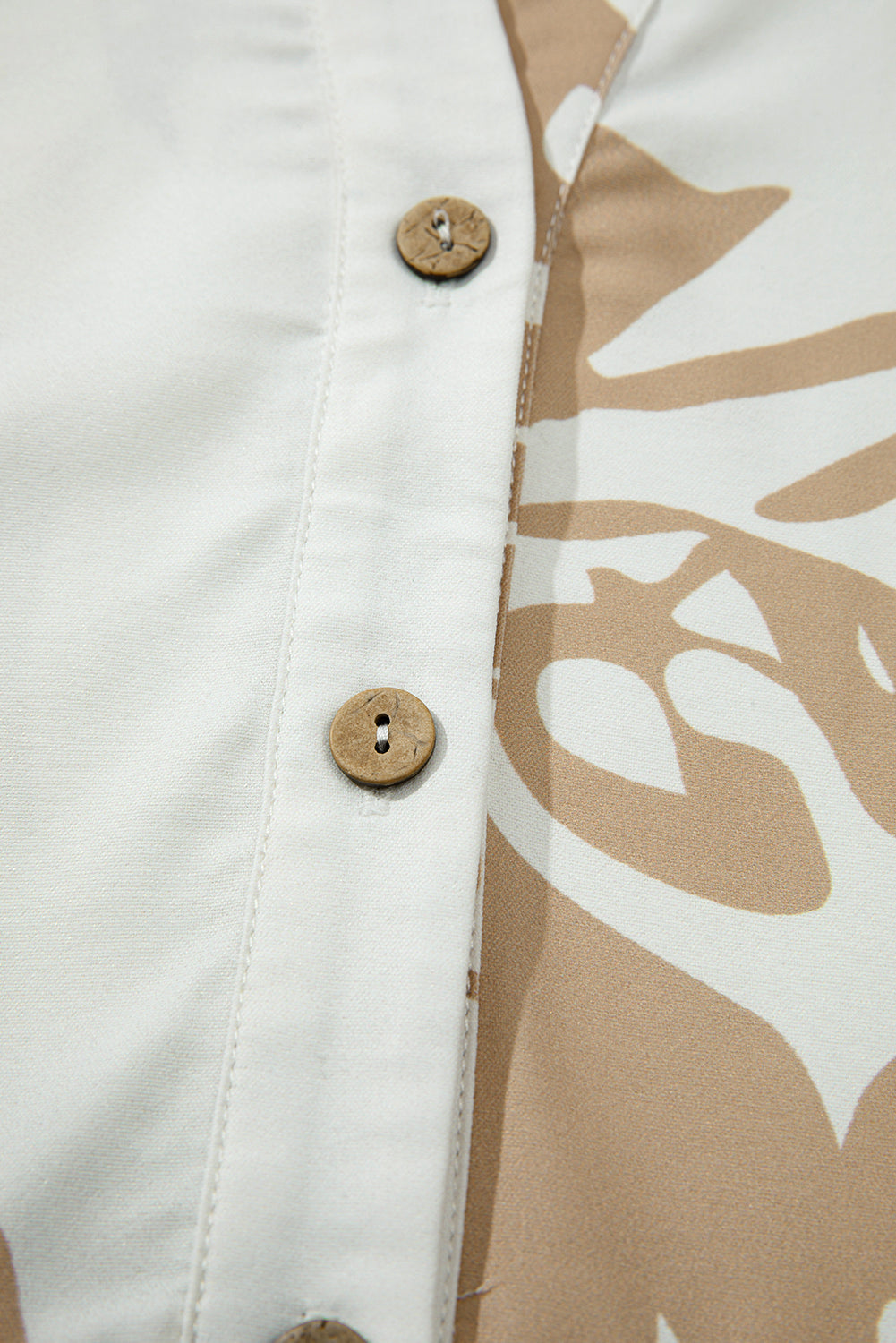 Khaki Patterned Ruffled Sleeve Half Placket Tiered A-line Plus Size Long Dress