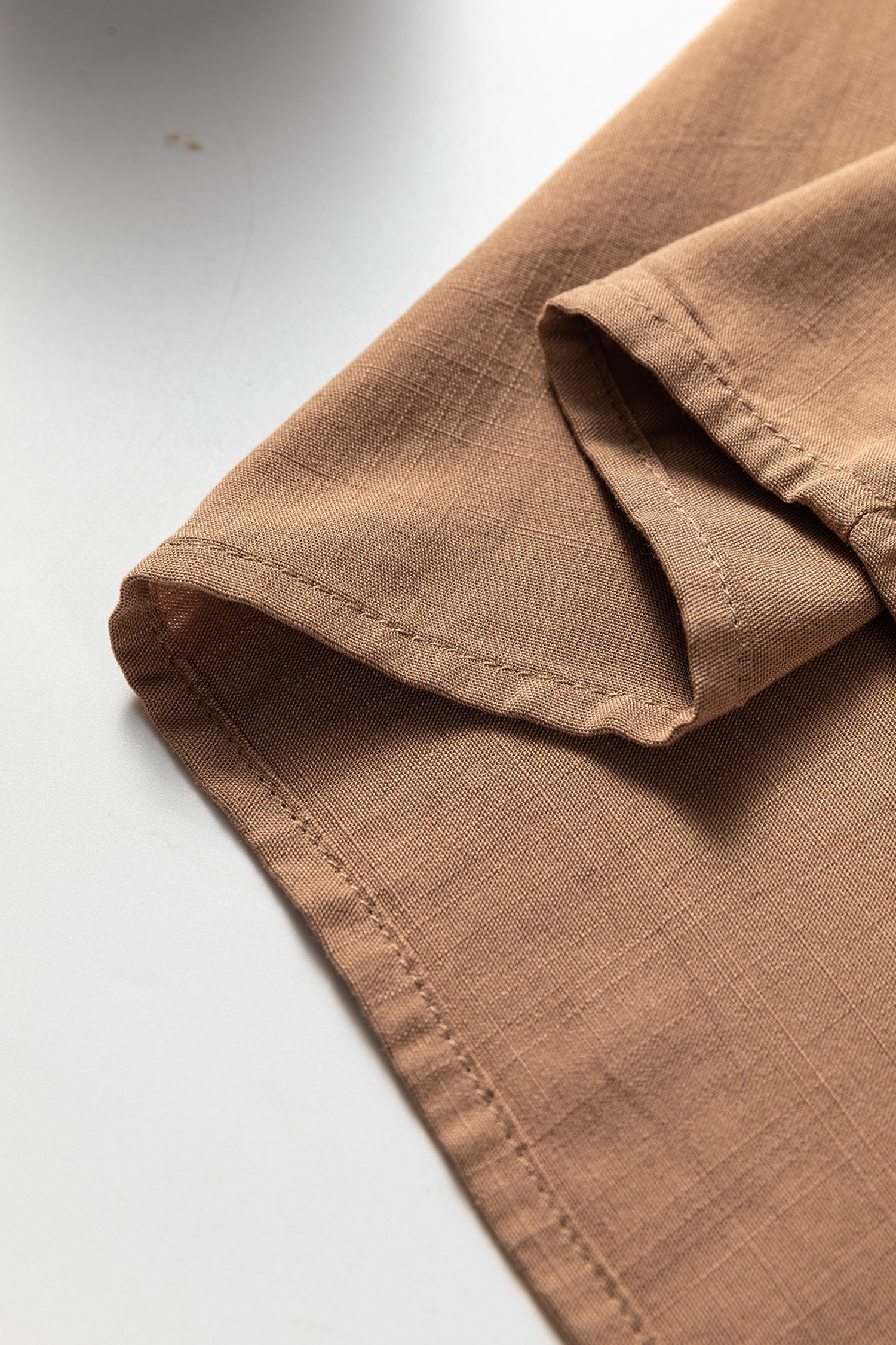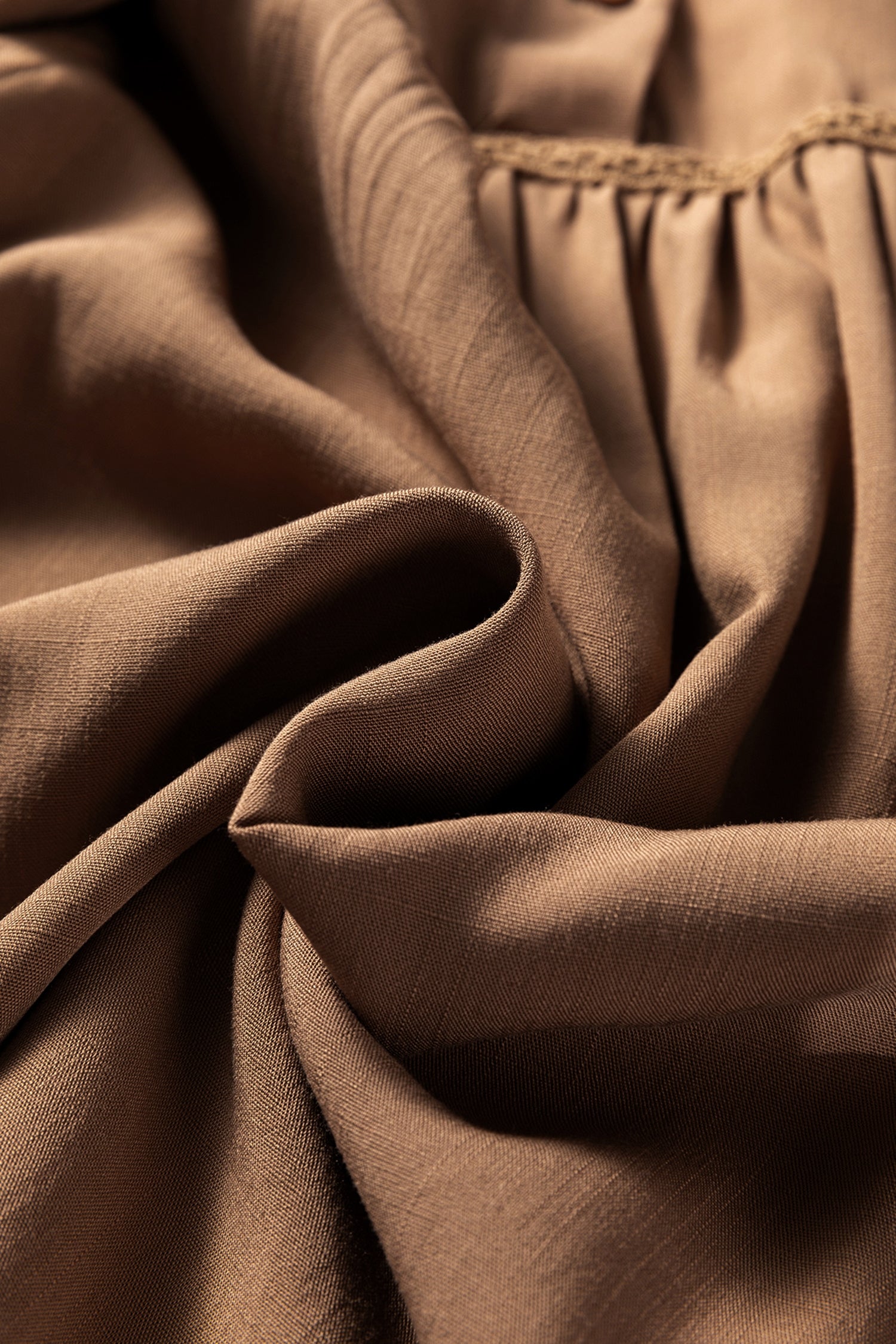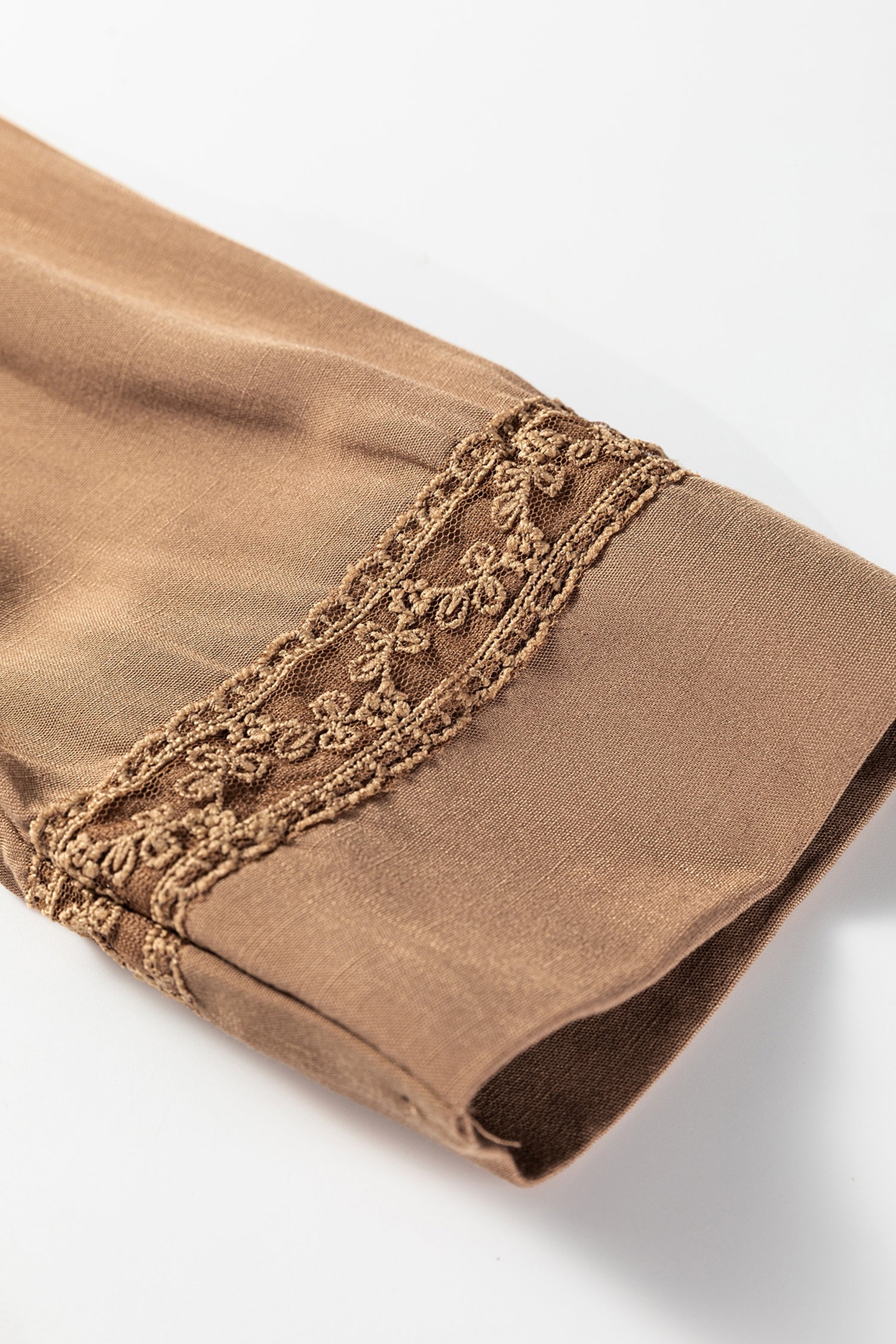 Straw Yellow Lace Trim Peter Pan Collar Long Sleeve Mini Shirt Dress